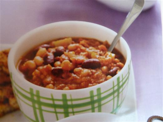Serve chili on top of a bowl of steaming brown rice.